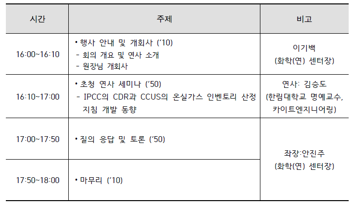 ㅇ 주제 : IPCC의 CDR과 CCUS의 온실가스 인벤토리 산정 지침 개발 동향 (김승도/한림대학교 명예교수, 카이트엔지니어링 대표이사)
