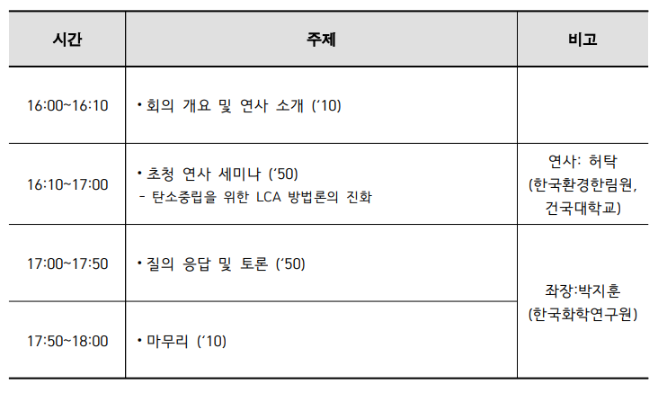 ㅇ 주제 : 탄소중립을 위한 LCA 방법론의 진화 (허탁/한국환경한림원 회장, 건국대학교 명예교수)