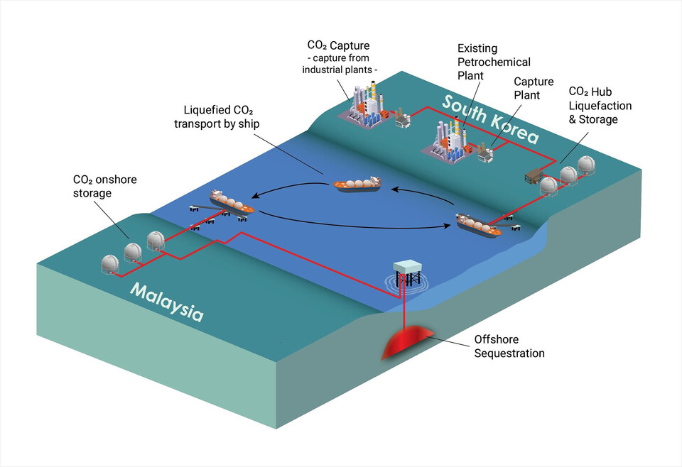 SK, 삼성, 롯데, 한국석유공사, 한화 등으로 구성된 연합군이 말레이시아에서 추진하고 있는 CCS프로젝트 인포그래픽.(그림=SK이노베이션 E&S)