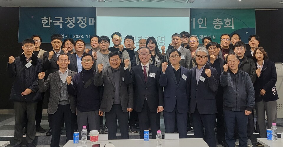 2023년 11월에 열린 한국청정메탄올산업협회 창립총회에서 참석자들이 기념촬영을 하고 있다.(사진=한국청정메탄올산업협회)