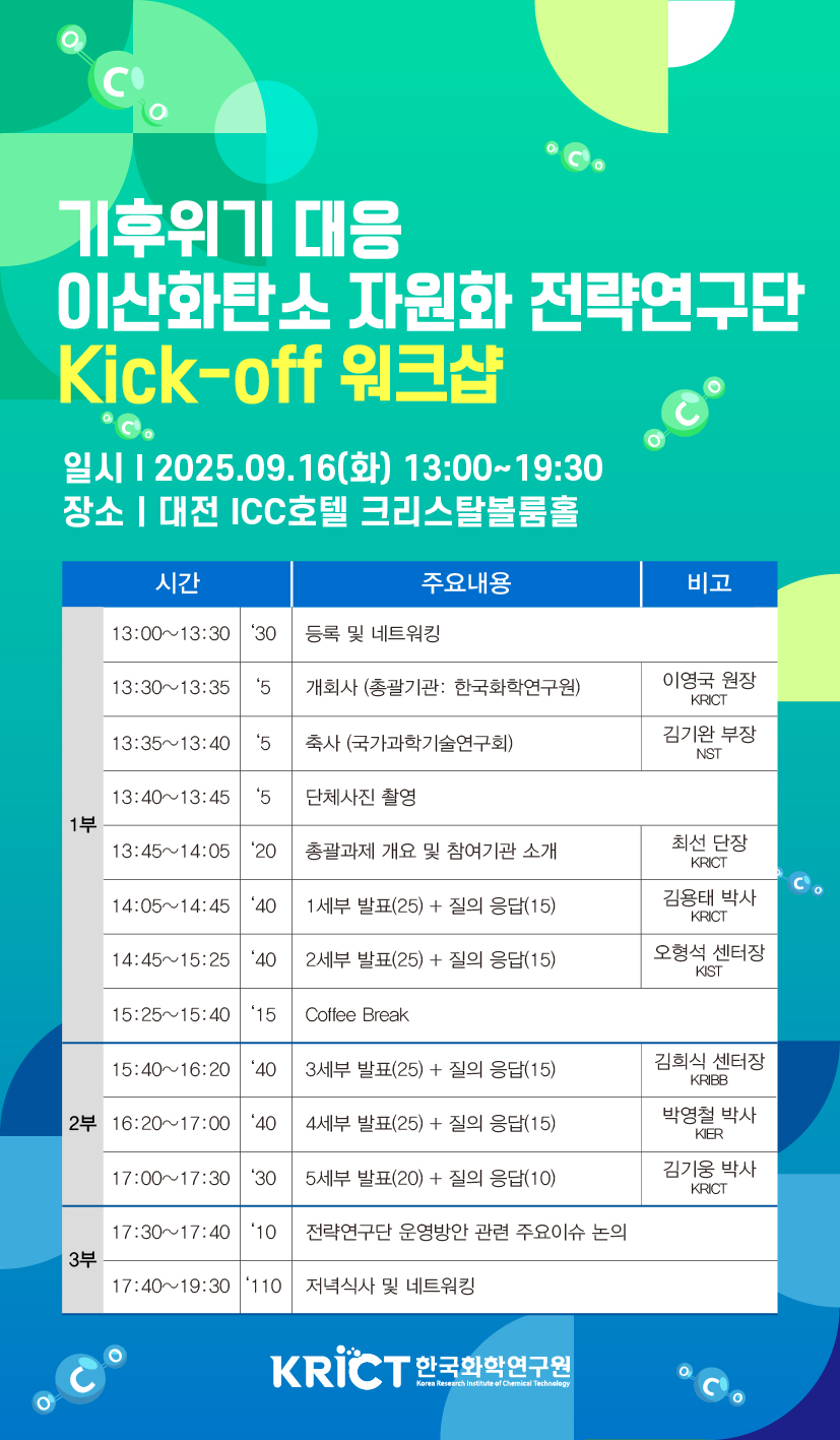 기후위기 대응 이산화탄소 자원화 전략연구단 글로벌 TOP 전략연구단 Kick-off 워크숍 개최 안내
